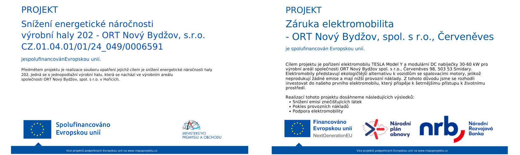Společnost ORT Nový Bydžov, ryze česká, soukromá společnost, vznikla v roce 1994 se zaměřením na drobnou zakázkovou výrobu v oboru kovovýroby. Vzrůstající nároky našich zákazníků zapříčinily nárůst výroby, rozšíření působnosti o další obory a nutnost doplnit výrobu o nová strojní zařízení.